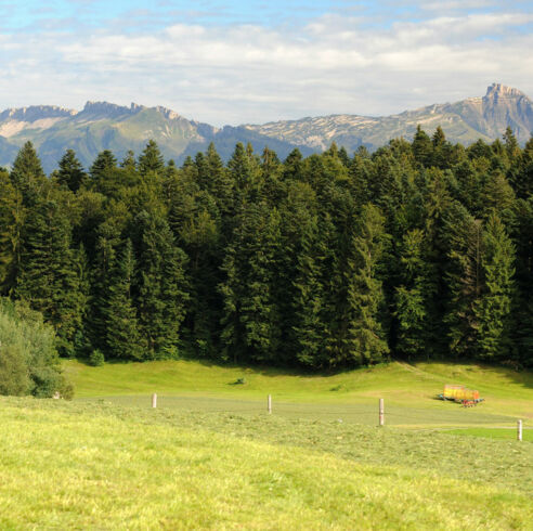 Mit einer Höhe von 938 Metern ist der Rotenberg nicht unbedingt ein Riese unter den Vorarlberger Aussichtsbergen – und doch bietet sich von der leicht zu erreichenden Erhebung ein sehr schöner Rundumblick über den Bregenzerwald. Das Bergpanorama reicht vom Gottesackerplateau mit dem Hohen Ifen über die Winterstaude bis hin zur Damülser Mittagsspitze. Auch ein Teil des Bodensees lässt sich in der Ferne erkennen. Sehenswert ist auch die alte Linde, die als markanter Einzelbaum auf dem Höhenrücken steht – und mit einigen Sitzbänken zum Rasten und Schauen einlädt.