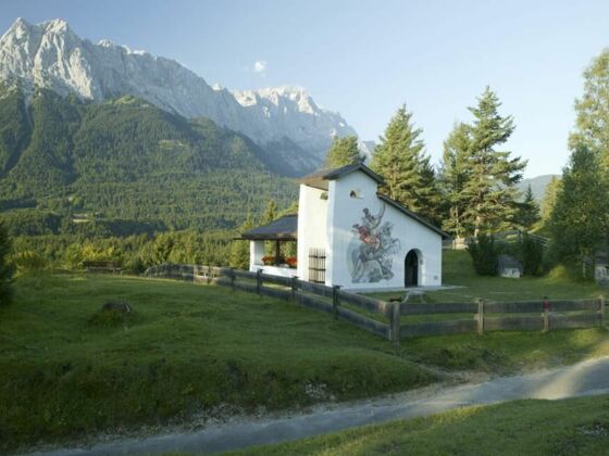 Von der Touristinformation aus gehst du durch den Michael-Ende-Kurpark zum Ausgang Loisachbrücke. Über die Brücke biegst du nach rechts in die Kramerstraße ein und folgt der Beschilderung Kramer St. Martinshütte. Nach kurzem Anstieg gehts links weiter auf der Teerstraße Richtung Almhütte. Links siehst du bald die Kriegergedächtniskapelle. An der Kreuzung oberhalb der Kapelle folgst du dem Kramerplateauweg nach links.Du kommst an der Almhütte und dem Kneippbecken vorbei bis am Ende des Kramerplateauweg ein Abstieg zum Hergottschrofen folgt. Hier angekommen geht es über die Loisachbrücke und die B2. Von hier geht es gerade aus, bis du links abbiegend auf den Höhenrain kommst. Der führt ca. 2,5 Kilometer bis zur Grainauer Kriegergedächtniskapelle und weiter nach Untergrainau. Nachdem du die Straße überquert hast, folgst du dem Weg rechts zum Badersee und dann weiter Richtung Eibsee. Danach geht es immer leicht bergauf bis zur Christlhütte. Hier überquert man die Eibseezufahrtsstraße und folgt der Beschilderung in den geschlungenen Weg Richtung Lärchwald. Der Wanderweg trifft kurz vor dem Eibseeparkplatz wieder auf die Eibseestraße. Hier überquert man die Straße und kommt zu der Bayerischen Zugspitzbahn.