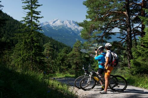 ab. Dort angekommen links abbiegen und durch den Ortsteil Barmsee weiter auf dem Radweg nach Klais. Von dort fahren wir auf dem bekannten Anfahrtsweg zurück nach Garmisch-Partenkirchen.