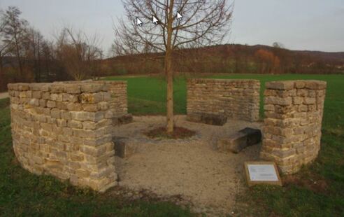 Das Flurdenkmal Vier Elemente von Christian Blank geht zurück auf die alte griechische Medizinin der man sich die Entstehung der Welt aus den vier Elementen Erde, Wasser, Luft und Feuer erklärte.