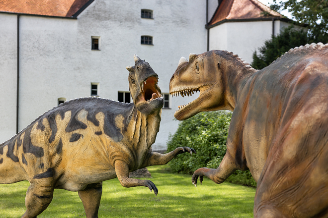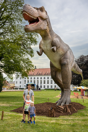 T-Rex, Triceratops und Co. sind so gut wie bereit: Ab diesem Jahr sind die Saurier auf Schloss Katzenberg zu besuchen, nur etwa 3 Kilometer von Kirchdorf am Inn und knapp 9 Kilometer von Bad Füssing entfernt – und schon jetzt ist klar: Das Dinoland wird DIE größte Urzeit-Freizeit-Attraktion für Familien und DinoFans in ganz Oberösterreich und Niederbayern! Zusammen mit den großartigen Partnern vom S’INNVIERTEL Tourismus wird das Dinosaurier-Spektakel im Innviertel zum Besuchermagneten im Grenzgebiet! Die Aufbauarbeiten laufen auf Hochtouren, damit sich das Dinoland ab 14. April von seiner schönsten und besten Seite zeigen kann!