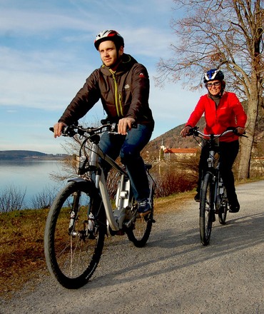 E-Bikes können Sie an vielen Servicestationen in der Alpenregion Tegernsee Schliersee ausleihen, aufladen oder entleerte Akkus tauschen. Die Adressen der Akkuwechsel-, Verleih- und Ladestationen finden Sie unter www.tegernsee-schliersee.de.
