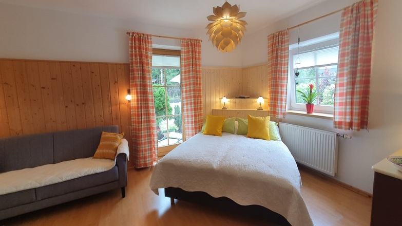 Das Bergnest ist eine im Erdgeschoss gelegene neu ausgestattete Ferienwohnung mit Flair und Seenähe in Bad Goisern am Hallstättersee. Angenehme ruhige Südlage.Die 44 qm große Wohnung in einem kleinen Häuschen (keine anderen Gäste im Haus) lädt zum Relaxen auf der möblierten 30 qm großen Sonnenterrasse mit herrlichem Blick auf die umliegende Bergwelt ein.