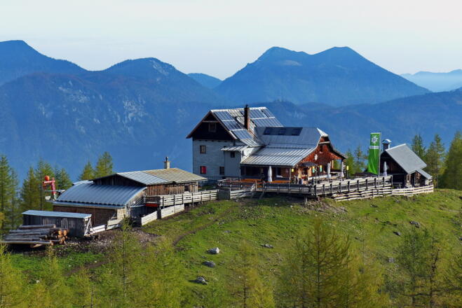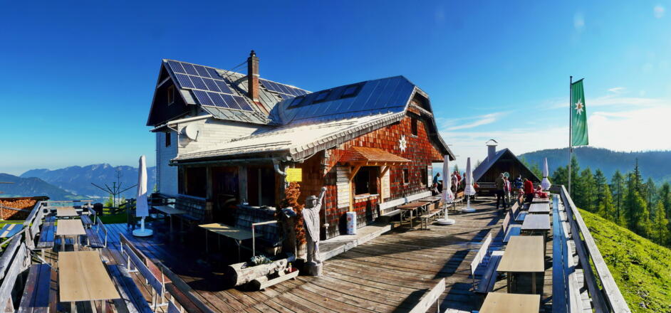 Die Dümlerhütte liegt auf 1.495m Seehöhe auf der Stofferalm am nordöstlichen Fuße des Warschenecks und erschließt ein herrliches Wandergebiet im Toten Gebirge. Durch die sonnige Lage ist die Hütte sowohl im Winter als auch im Sommer ein beliebtes Ausflugsziel für Familien-, Betriebs- und Schulausflüge. Kulinarisch verwöhnt werden die Gäste bei bester oberösterreichischer Hausmannskost und regionalen Produkten. Zwei gemütliche Gasträume bieten ca. 70 Personen Platz und die große Terrasse vermittelt bei Schönwetter alpine Gastgartenatmosphäre. Weiters gibt es rund um die Hütte im Sommer eine Almbewirtschaftung, einen Feuerplatz und Klettermöglichkeiten im Klettergarten.