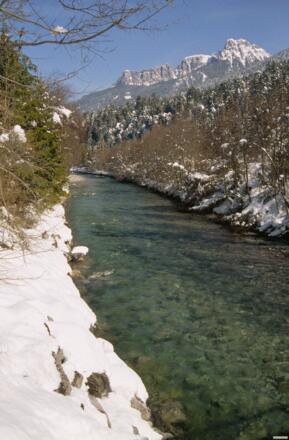 Bis zum Urisee Gehsteige und ruhige Sträßchen. Der nur mäßig steile Aufstieg zur Dürrebergalm verläuft auf einem geräumten Winterweg.