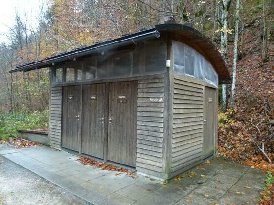 Parkplatz Scheiblingau mit großzügiger Infohütte und WC´ s vor Ort.