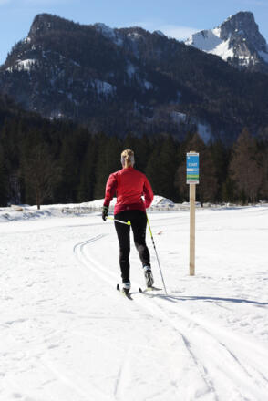 Durch unberührte Landschaft führt der Streckenverlauf der gelben Ebentall Loipe, bei km 3 kommt man an den Teichen vorbei.