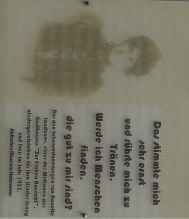 Der Vorgänger des heutigen Gebäudes wurde vermutlich Ende des 18. Jahrhunderts errichtet. In den 1820er Jahren eröffnete Josef Landauer, der erste jüdische Bäckermeister in Hohenems, hier sein Gasthaus „Zur Frohen Aussicht“, und heiratete Jeanette Winkler aus Franken. Noch hundert Jahre später wurde das Gasthaus im Volksmund „bi da Schanet“ genannt.