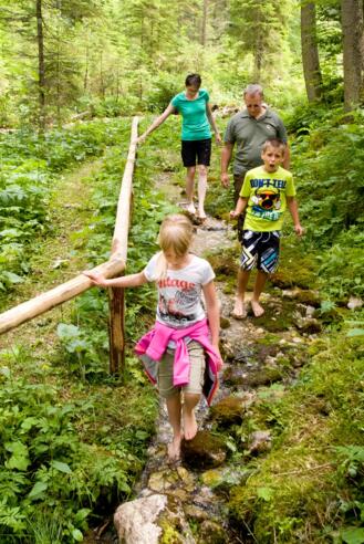 Start an der Talstation der Ehrwalder Almbahn, rechts in Richtung Wassererlebnisweg. Die Brücke queren und