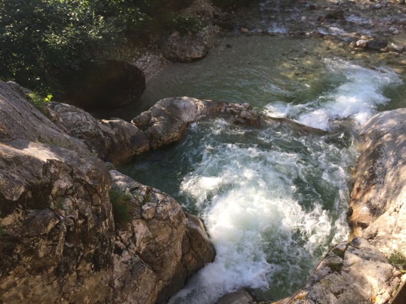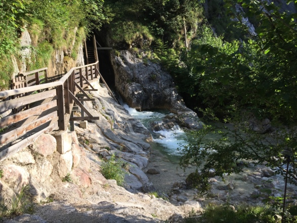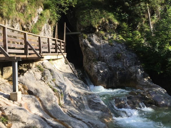 Am Klamm-Eingang befindet sich ein kleiner Felspool, Abkühlung am Bachlauf bis zur Saalach möglich.