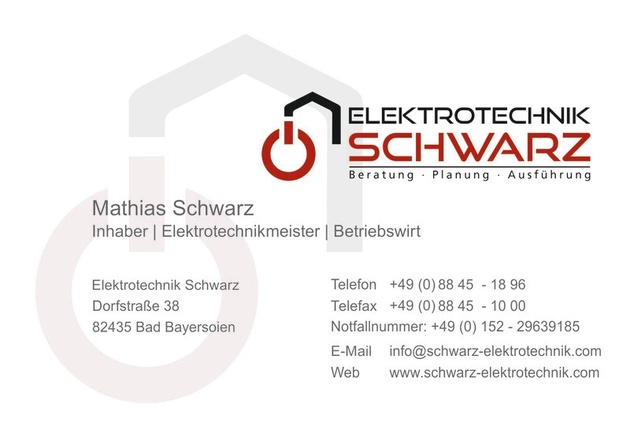 Elektrotechnik Schwarz mit Sitz und Ladengeschäft in Bad Bayersoien ist Planungsbüro und Handwerksbetrieb in einem.