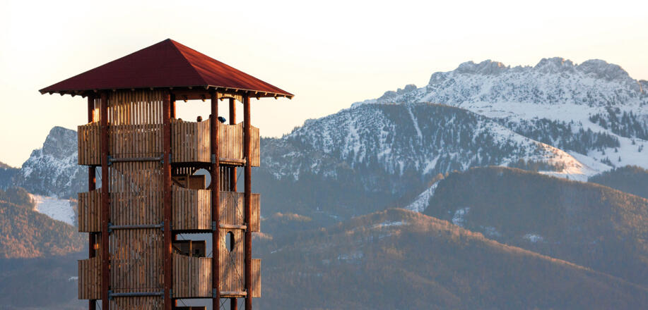 Auf der Feldwieser Halbinsel führt ein Rundweg durch die malerische Landschaft am Seeufer und Rande des Mündungsdeltas der Tiroler Ache. Am Aussichtsturm kann man oft viele verschiedene, geschützte Vogelarten beobachten.