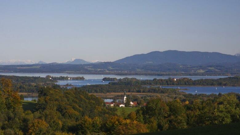 Die schnelle Version, um die grandiose Aussicht auf der Ratzinger Höhe zu genießen. Man sieht auf die Chiemgauer Bergkette, den Chiemsee und den Simsee. Ein entspannter Rundweg mit nur kleinen Steigungen.