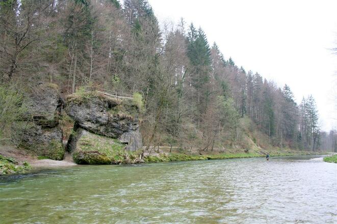 In den Stein wurde eine Treppe geschlagen, über die man auf den größeren der Felsen steigen kann. Von dort hat man eine wunderschöne Aussicht über den Fluss und angrenzende Wälder.