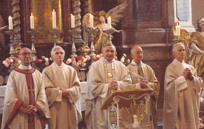 Papst Benedikt XVI. Joseph Ratzinger verbrachte Teil seiner Kindheit und Jugend in Traunstein. Er wurde 1937 in der Pfarrkirche gefirmt und feierte in St. Oswald mit der Primiz im Jahr 1951 seine erste Heilige Messe.