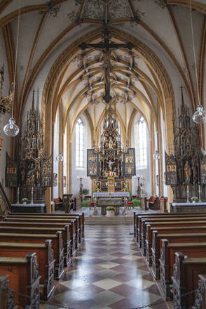 Der Jakobsweg führt auch durchs Rottal – ein Teil davon ist dieser Wandervorschlag. Vorneweg: Die Route ist 23,4 Kilometer lang und kein Rundweg. Wer will, kann die Tour mit der Bad-Birnbach-App in mehrere Teilstücke zerlegen. Sehenswertes gibt es auf der Strecke allemal. Start ist St. Veit in der Gemeinde Bayerbach. Hier lohnt sich ein Blick in die Kirche, deren Kern romanisch aus dem 13. Jahrhundert ist. Das Portal besticht mit gotischen Beschlägen. Wir orientieren uns Richtung Huckenham. Die Kirche St. Margareta ist nicht zugänglich. Ihre Ursprünge gehen bis tief ins Mittelalter zurück. Vorbei am Vital Camp, marschieren wir zum Dorfplatz und der Pfarrkirche St. Petrus. Über die Langwinkler Straße verlassen wir Bayerbach und haben einen Anstieg zu überwinden. Dafür werden wir belohnt – mit der eben renovierten Wallfahrtskirche Langwinkl und mit einem schönen Ausblick ins Rottal hinein. Wir gehen nun bergab Richtung Thanham. Ehe wir den Ort erreichen, biegen wir links ab und passieren Neugertsham, Rucking sowie Priel auf dem Weg nach Asbach. Die Klosterkirche St. Matthäus ist allemal einen Abstecher wert, beherbergt sie doch zahlreiche Werke großer Meister. Asbach verlassen wir über den Unterberg und kommen so auf Maierhof zu. Hier folgen wir linkerhand einem Anwandweg, der an der Staatsstraße entlang führt. Wir überqueren die Rottalbahn und haben einen neuen Begleiter: die Rott! Über die alte Rottbrücke kommen wir nach Schwaim. Hier geht es rechts schnurgerade über Singham nach Karpfham, wo wir auf die Pfarrkirche Mariä Himmelfahrt (erbaut 1453 bis 1476) stoßen. Der Strenberger Straße entlang geht es an den Sportanlagen des TSV Karpfham vorbei. An der folgenden Abzweigung halten wir uns rechts und passieren Strenberg. Die nächste Stichstraße ignorieren wir, das darauf folgende Angebot nehmen wir an und biegen links ab, um über Krennleiten und Grub nach Großhaarbach zu gelangen. Wir sind jetzt mitten in der bäuerlich geprägten Kulturlandschaft des Rottals. Das ändert sich auch nicht, nachdem wir den Haarbach überquert haben und danach rechts abbiegen, um Tiefendobl anzusteuern. Wir erreichen Tettenweis. Über die Klosterstraße und die Hauptstraße biegen wir in den Raiffeisenplatz ein. Nach der Querung des Tettenweiser Baches folgen wir der Oberschwärzenbacher Straße ortsauswärts. Oberschwärzenbach und Mitterham heißen die nächsten Etappen, dann folgen wir dem Lindauer Weg bis zur Gabelung an einem großen Vierseithof. Jetzt noch einmal rechts abbiegen, und dann sind wir am Ziel dieser Tour angelangt: Rotthof mit der geheimnisvollen Siebenschläferkirche.