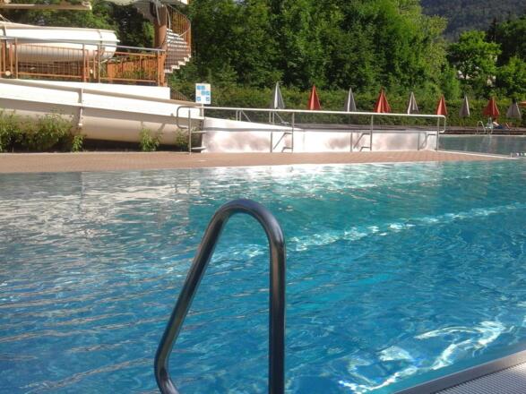 Hier steht Ihrem Badevergnügen nichts im Wege! Auch die ganz Kleinen haben im Kinderbecken mit kleiner Rutsche ihren Spaß.