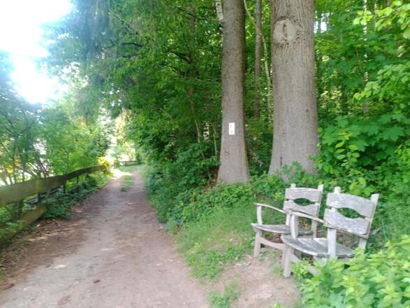 - Nach ca. 550m an Wegkreuzung: Rechts - Markierung: Qualitätstour "RÄUBERpfad" Eschau