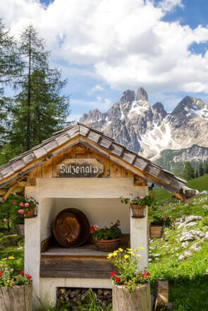 Filzmoos ist ein Wanderdorf par exellence. Ob bei einer Orchideen- oder Kraftplatzwanderung oder auf dem Krapfenhatscher: Allerorts liegen wunderbare Almhütten auf dem Weg, deren hausgemachten Schmankerln man als Wanderer nicht widerstehen sollte. So wird es Ihnen auch auf der heutigen Etappe gehen: Denn die rund 20 km lange Tour führt am Fuße des mächtigen Dachsteinmassivs in einer großen Runde zu insgesamt fünf bewirtschafteten Hütten, von denen drei zertifizierte Almsommerhütten sind. Eine Empfehlung sind sie alle! Die Bachlalm ist außerdem für ihre zutraulichen Murmeltiere bekannt und an den Hofalmen lohnt ein Abstecher zum idyllisch gelegenen Almsee und zur kleinen Kapelle „Maria am Steinegg’l“. Das Panorama ist traumhaft schön, allen voran bleibt die mächtige Bischofsmütze ständige Begleiterin auf dieser Tour, die im Filzmooser Ortsteil Neuberg endet. Wer der majestätischen Bischofsmütze noch näher kommen möchte und eine alpinere Wandertour bevorzugt, der entscheidet sich für die Variante 22a mit der Hofpürglhütte (1.705 m) als Etappenziel.