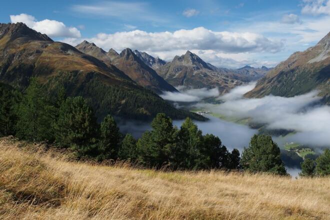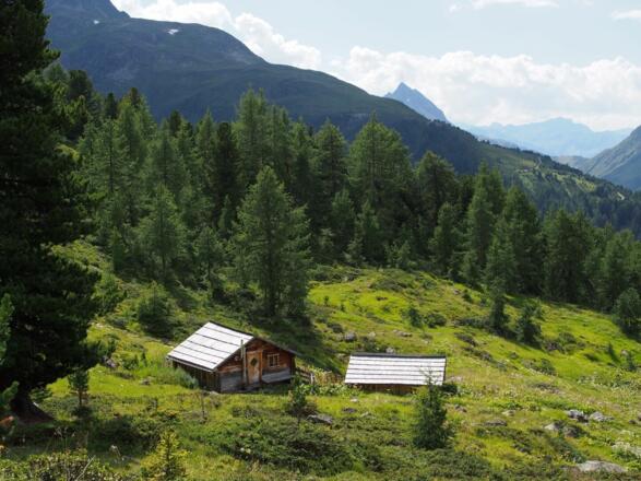 Der Weg geht weiter bei derTalstation der Pardatschgratbahnund führt zur Hängebrücke Kitzloch. Nach Querung des Fimbabachsgelangt man bald zum Fußsteig und folgt dem Wegweiser Rauher Kopf. Bevor man den Gipfel erreicht, muss ein anstrengendes Steilstück durch den Wald bewältigt werden, bis zur Jagdhütte am Tschamatschkopf auf 2.145 m. Von dort aus hat man einen weiten Blick über das sommerliche Skigebiet Silvretta Arena. Über einen hügeligen Steiggelangt manüber die weite Hochebene auf denIschgler Hausberg, denRauher Kopfauf 2.478 m. Der imposante Ausblick auf das gesamte Paznauntal lädt zum Verweilen ein. Weiter vom Gipfel aus führt der markierte Weg taleinwärts entlang dem Grat, von dem aus man bald zum Außerbergli auf 2.080 m absteigt. Entlang der Flanke erreichtman dasInnerbergli auf 2.066 m. Vom Innerbergli kann man einen Abstecher zum türkisblauen Berglisee machen, den man nach kurzer Wegstrecke erreichen kann. Vom Innerberglierreicht man nach einem ausgedehnten Abstieg die bewirtschafteteLarein Alpe auf 1.860 m, auf der es eine Varietät aus hausgemachten und heimischen Köstlichkeiten zum Schlemmen gibt. Von dort gelangt man nach einem weiteren Abstieg zum Grillteich Stafali und begeht zum Ausklang den Galtürer Höhenweg.