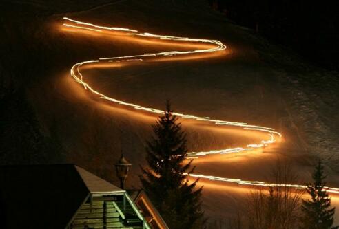Traditioneller Fackellauf der Filzmooser Skilehrer mit Jahreszahllegung und Eröffnungsschießen mit den Filzmooser Prangerschützen bei der Papagenobahn.