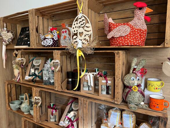 Im Hofladen der Familie Hauptmann werden viele hofeigene Produkte präsentiert und gerne auch für eine Verkostung angeboten.