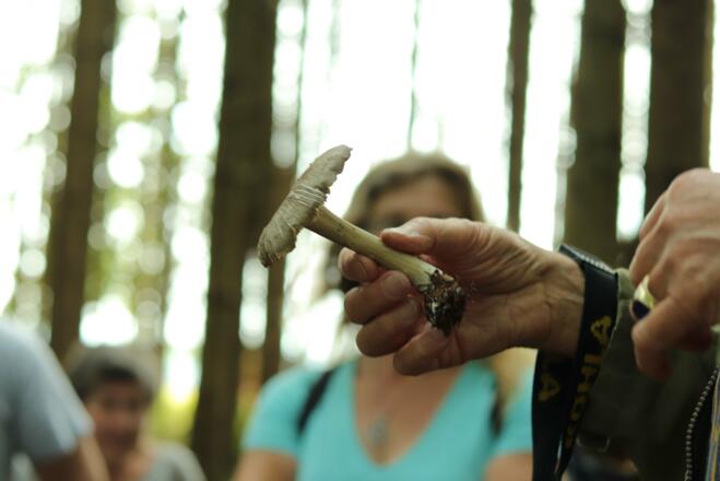 Für die Teilnehmer*innen gibt es zum Abschluss einen Einblick in verschiedene Pilzkunde-Bücher, in eine Sammlung von Baumpilzen und getrockneten Speisepilzen sowie eine zusammenfassende Pilzkunde-Broschüre zum Mitnehmen.