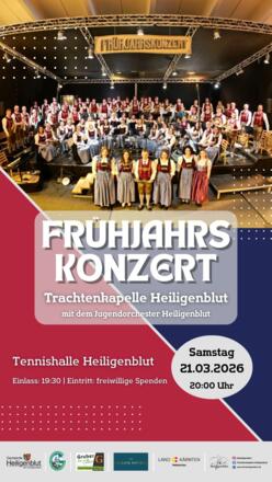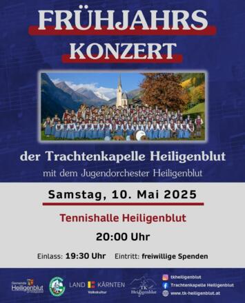 Die Trachtenkapelle Heiligenblut lädt Sie herzlich zum Frühjahrskonzert in der Tennishalle Heiligenblut ein.