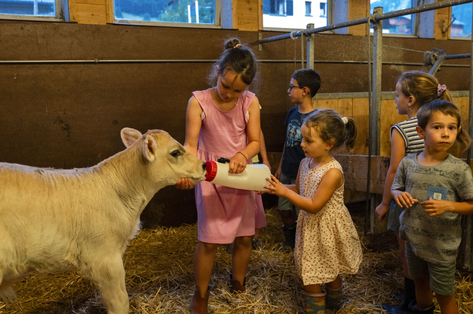Auf dem Bauernhof der Familie Moosbrugger können Kinder zuschauen, wie der Bauer seine Kühe füttert und melkt. Die frische und "kuhwarme" Milch kann gleich an Ort und Stelle probiert werden. Natürlich sind auch eure Eltern herzlich willkommen.
