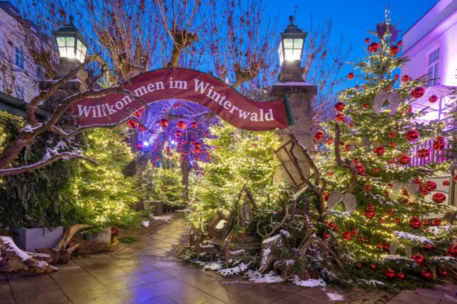 Unser großzügiger Gastgarten verwandelt sich in einen Genuss-Winterwald der bei einsetzender Dunkelheit nicht nur Kinderaugen zum Strahlen bringen wird. Tausende Lichter und Kugeln, geschmackvolle Dekoration und der Klang von Weisenbläsern verzaubern Linz. Ein Ambiente zum Träumen und Genießen.