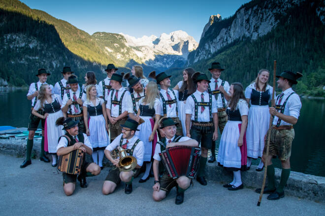 Es erwartet dich ein gemütlicher Nachmittag auf der Zwieselalm mit heimischen Klängen und der Gosauer Schuhplattler Gruppe "D´Dachstoana".