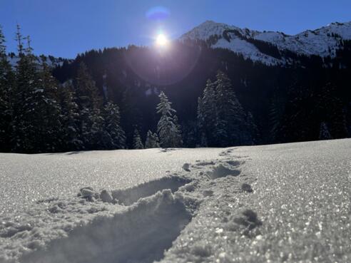 Das Schwarzwassertal, eingebettet zwischen Walmendinger Horn und Hoher Ifen, ist ein wildromantisches Naturschutzgebiet. Unsere Schneeschuhtour beginnt an der Auenhütte. Von dort aus führt der Weg entlang des Schwarzwasserbachs bis zu dessen Quellgebiet bei der Schwarzwasserhütte, 1.650m. Beim Auf- und Abstieg durchqueren wir wunderschöne, märchenhafte Winterlandschaften mit gefrorenen Wasserfällen und tief verschneiten Schluchten. Auch bei Schneefall ist diese Tour ein genussvolles Erlebnis. Eine Einkehr auf der Schwarzwasserhütte rundet die Tour ab (nicht inkludiert).