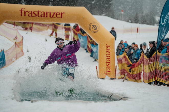 Beim Water Attack Contest versuchen die Teilnehmer*innen auf Ski oder Snowboard ein ca. 15 m langes Wasserbecken zu durchqueren. Wer es nicht schafft bis ans Ende zu gleiten und in den kühlen "Fluten" versinkt, scheidet zwar aus, kann sich aber der Anteilnahme des Publikums sicher sein. Nach jedem Durchgang wird der Anlauf verkürzt, bis auch der/die letzte "Attacker*in" untergetaucht ist. Die Sieger*innen erwarten tolle Sachpreise.