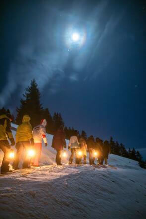 Die Bergrettung Damüls führt dich in einer etwa 60-minütigen Wanderung mit Sturmlaternen durch das Bergdorf Damüls! Nach dem Abendessen bietet dir die nächtliche Wanderung eine gesunde und informative Abwechslung. Im Anschluss wirst du zu deiner Unterkunft in Damüls gebracht!