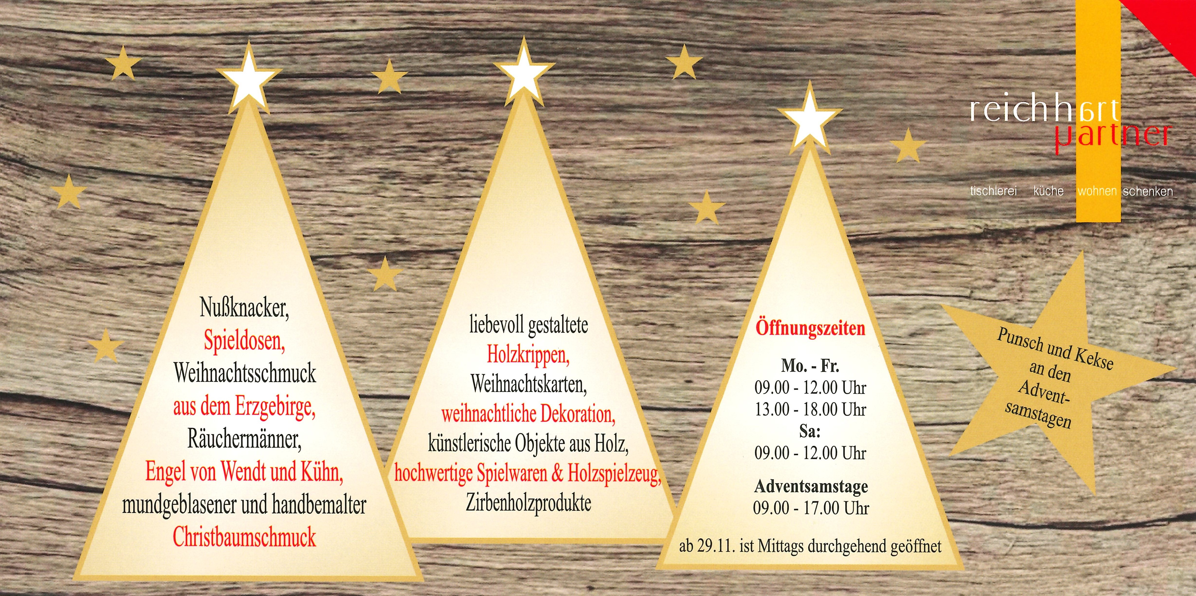 Es erwartet Sie Punsch und Kekse an den Adventsamstagen. Bei der Ausstellung finden Sie von Engel von Wendt und Kühn, mundgeblasener und handbemalter Christbaumschmuck über Weihnachtsschmuck aus dem Erzgebirge bis hin zu künstlerischen Objekte aus Holz und vieles mehr.