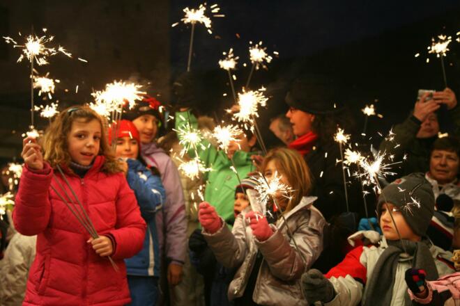 Weihnachtliche Stimmung mit Punsch, Glühwein, Wunderkerzen... Um ca. 16:40 Uhr kommt der Weihnachtsmann mit dem Pferdeschlitten.