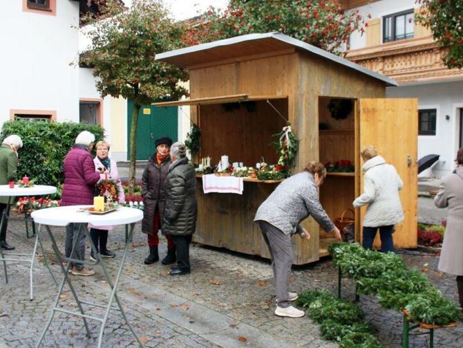 Selbstgebastelte Adventkränze, Türkränze und Gestecke - liebevoll handgemacht von den Trachtenfrauen und der kath.Frauenschaft Bad Vigaun