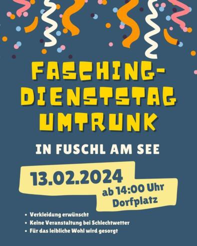 Faschingsparty am Dorfplatz in Fuschl am See. Für das leibliche Wohl sorgt die Feuerwehr Fuschl am See.