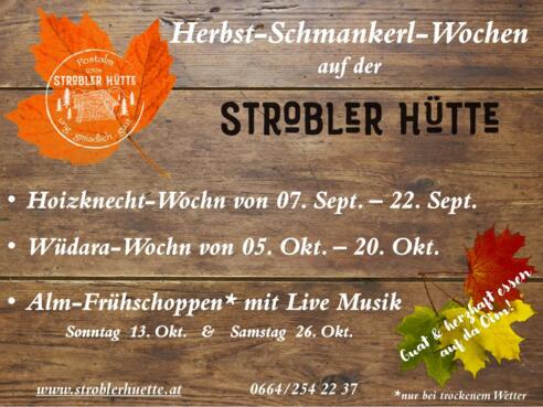 Herbst-Schmankerl-Wochen auf der Strobler Hütte / Postalm. Guat und herzhaft essen auf der Oim!