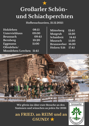 Am Thomastag, den 21.12. ziehen die Perchten von Bauernhof zu Bauernhof und wünschen "An Fried, an Reim & an Gsund".