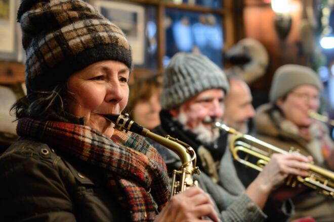 An jedem Dienstag, Donnerstag, Samstag und Sonntag von 18:00 bis 20:00 Uhr erfüllen Bläsergruppen die Welser Weihnachtswelt mit toller Blasmusik. Auf der Almdorfbühne am Stadtplatz sorgen sie mit ihren festlichen Melodien für eine ganz besondere, weihnachtliche Atmosphäre.