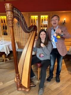 Musikalische Miterzählerin ist Stephanie Schaidreiter mit der Harfe.
