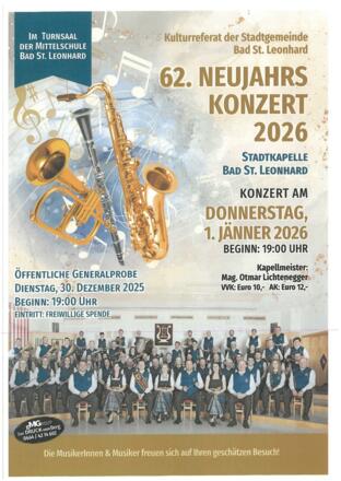 Das Neujahrskonzert und öffentliche Generalprobe der Stadtkapelle Bad St. Leonhard