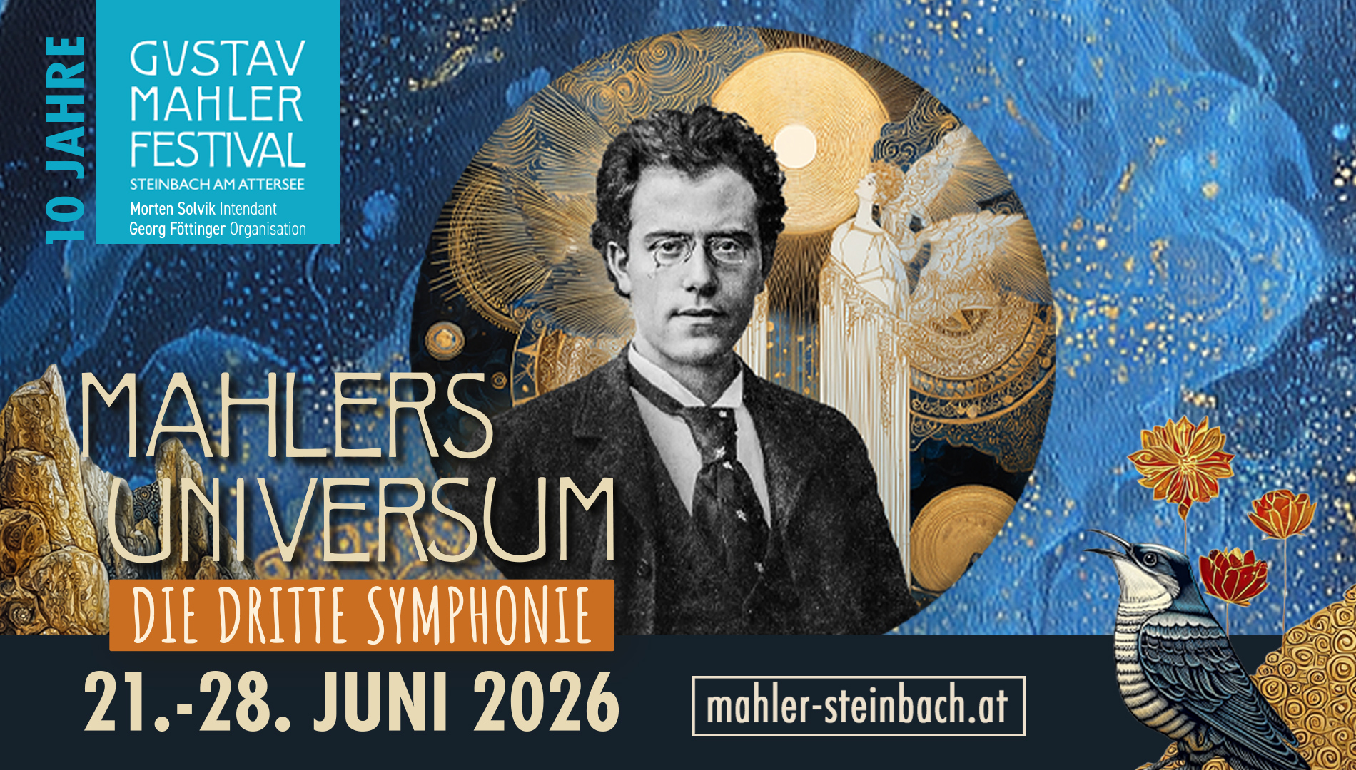 Zum 10. Jubiläum des Steinbacher Gustav Mahler Festivals und 130 Jahre nach der Vollendung von Mahlers Dritter Symphonie widmet sich das Festival 2026 in einer erweiterten Festwoche ganz dem Klangkosmos des Komponisten – in vielfältigen Perspektiven auf Natur, Mensch und Musik.