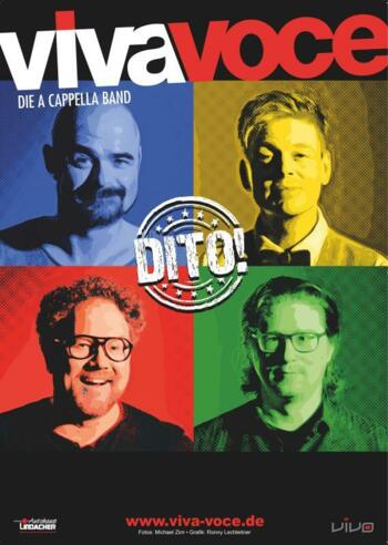 DITO!: Kenne ich! Geht mir genauso! Ist mir auch schon passiert! Verliebtheit, Lebenslust, Lachen – aber manchmal auch Faulheit und Trübsinn oder die unvermeidbaren Fallstricke des Alltags verbinden alle Menschen. Das geht den A‐cappella‐Großmeistern von VIVA VOCE natürlich ganz genauso. Denn in mehr als 25 Jahren auf den Bühnen der Welt haben David Lugert, Bas