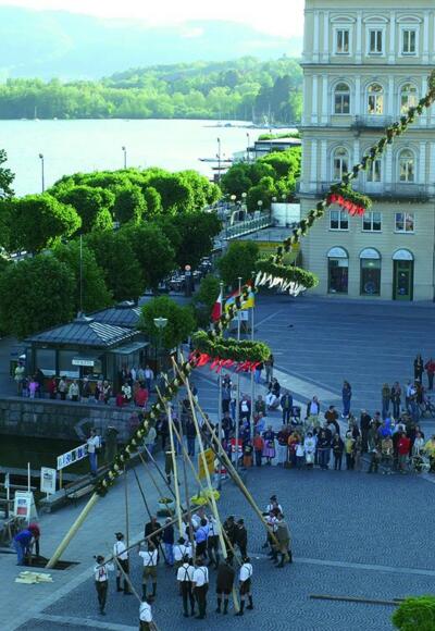 Maibaum-schmeissen um 18:00 Uhr am Rathausplatz