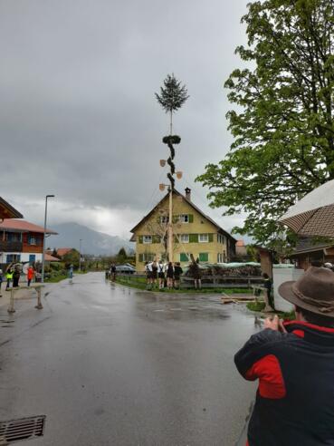 Traditionelles Maibaumaufstellen auf dem Dorfplatz Sigishofen