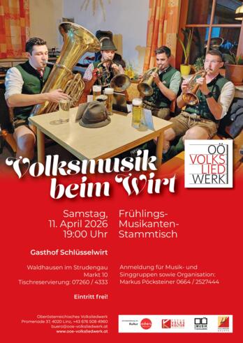 Herzliche Einladung zur "Volksmusik beim Wirt" am Freitag, 25. April 2025 im Landgasthof Schlüsselwirt in Waldhausen.