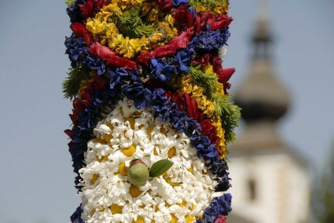 Die herrlichen Blumenstangen bleiben bis zum 15. August, dem "Hohen Frautag" in der Kirche aufgestellt, und können dort für jedermann besichtigt werden.