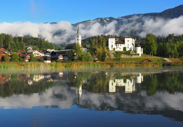 Eingebettet in die umliegende Bergwelt, umgeben von Blumenwiesen befindet sich der idyllische Böndlsee, zu dem Sie die Sonnenterrasse-Tour führt. Gemeinsam mit Ihrem Guide Manfred fahren Sie auf dem Tauernradweg der Salzach entlang ins Grafenhofdorf. Nicht zu steil abseits der Hauptstraße, vorbei an schönen Bauernhöfen, bunten Wiesen und Feldern geht es nach St. Veit. Weiter führt eine nicht zu stark frequentierte Straße zum Böndlsee. Nach einem kurzen Anstieg über den Buchberg kommen Sie zu einer alten Schmiede aus dem 14. Jahrhundert. In Goldegg angekommen, besuchen Sie das Schloss Goldegg und das Schlosscafé, wo wir uns für die Rückfahrt ins Alpendorf stärken.